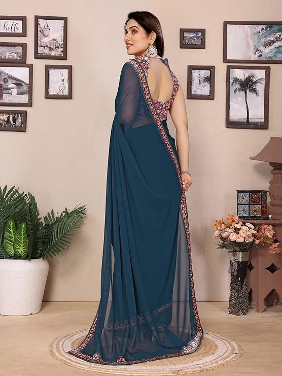 Women’s Georgette Sequins Work Saree With Unstitched Blouse Piece